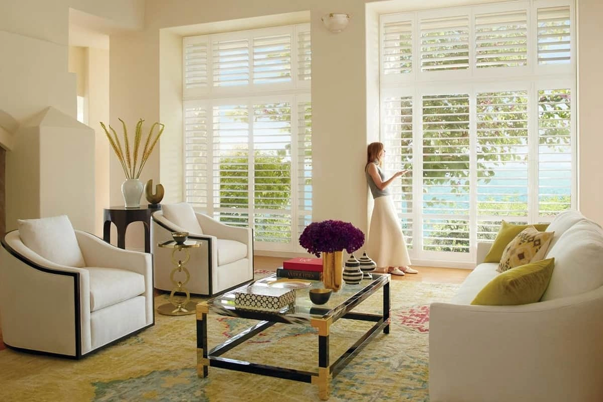 Interior plantation-style shutters use a slatted construction design that has been beloved for centuries because of their ability to provide light control, ventilation, and a view all at once. For the best visibility, opt for larger louver sizes that will have correspondingly larger open spaces between them for a less obstructed view.