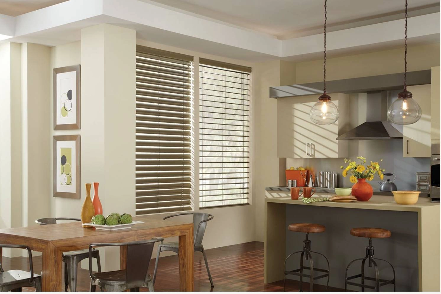 Smaller vane sizes will read more traditionally, especially in natural wood tones, whereas larger vane sizes are more concurrent with modern interior design styles. This is especially true when you choose bold neutral hues like white.